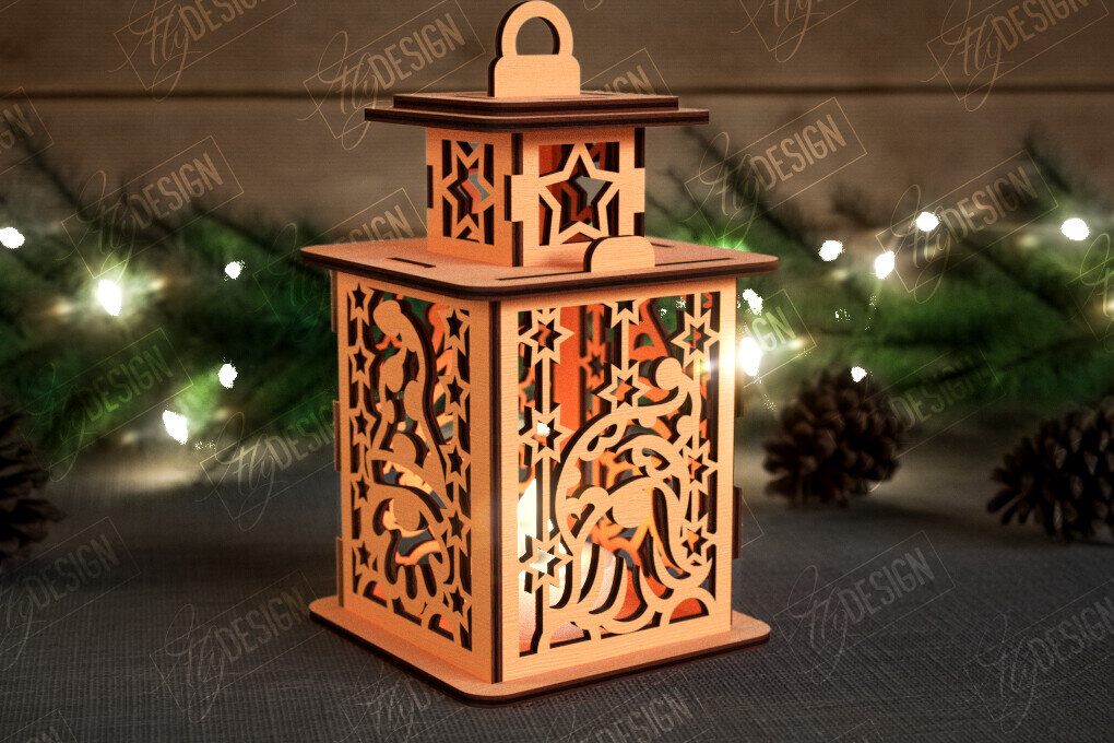 Intra απο ξύλο plywood 3mm-4mm πάχος Χριστουγεννιάτικο Φανάρι | 3D φανάρι σκιών Δίασταση 15x15 cm INTRAFABR-108898628