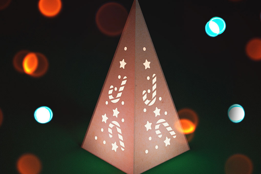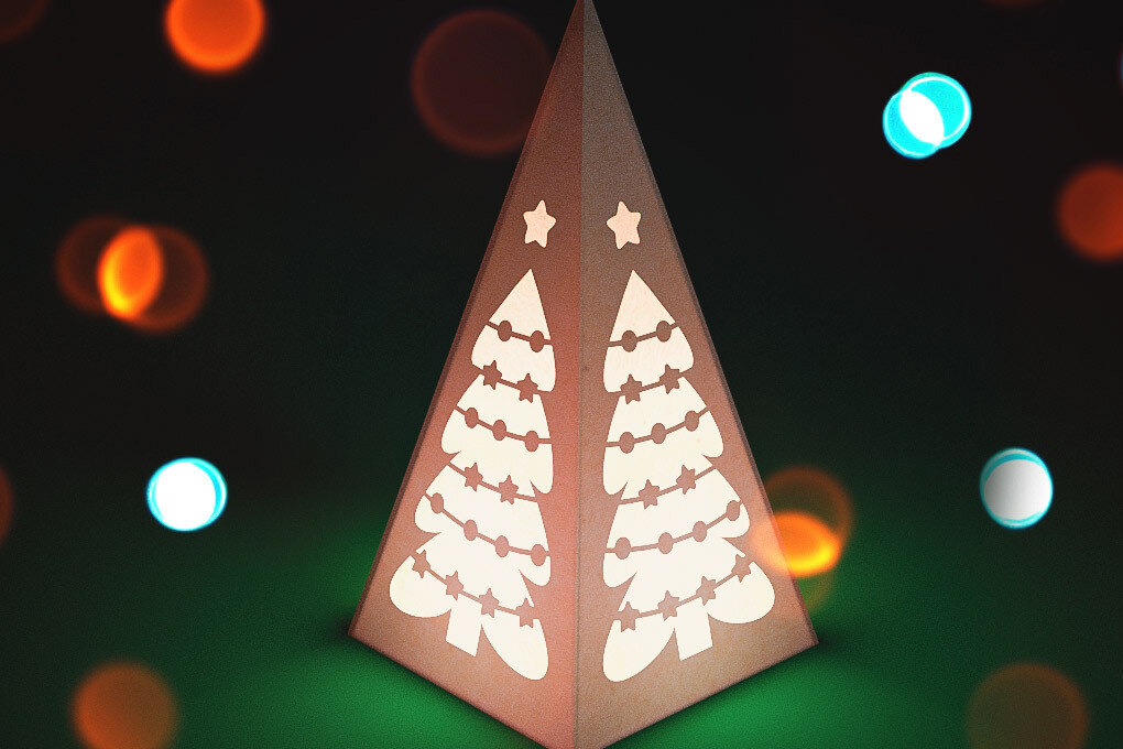 Intra απο ξύλο plywood 3mm-4mm πάχος Χριστουγεννιάτικο φανάρι κώνου με λέιζερ | Δίασταση 15x15 cm INTRAFABR-75473575