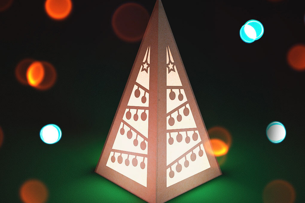 Intra απο ξύλο plywood 3mm-4mm πάχος Χριστουγεννιάτικο φανάρι κώνου με λέιζερ | Δίασταση 15x15 cm INTRAFABR-75473632