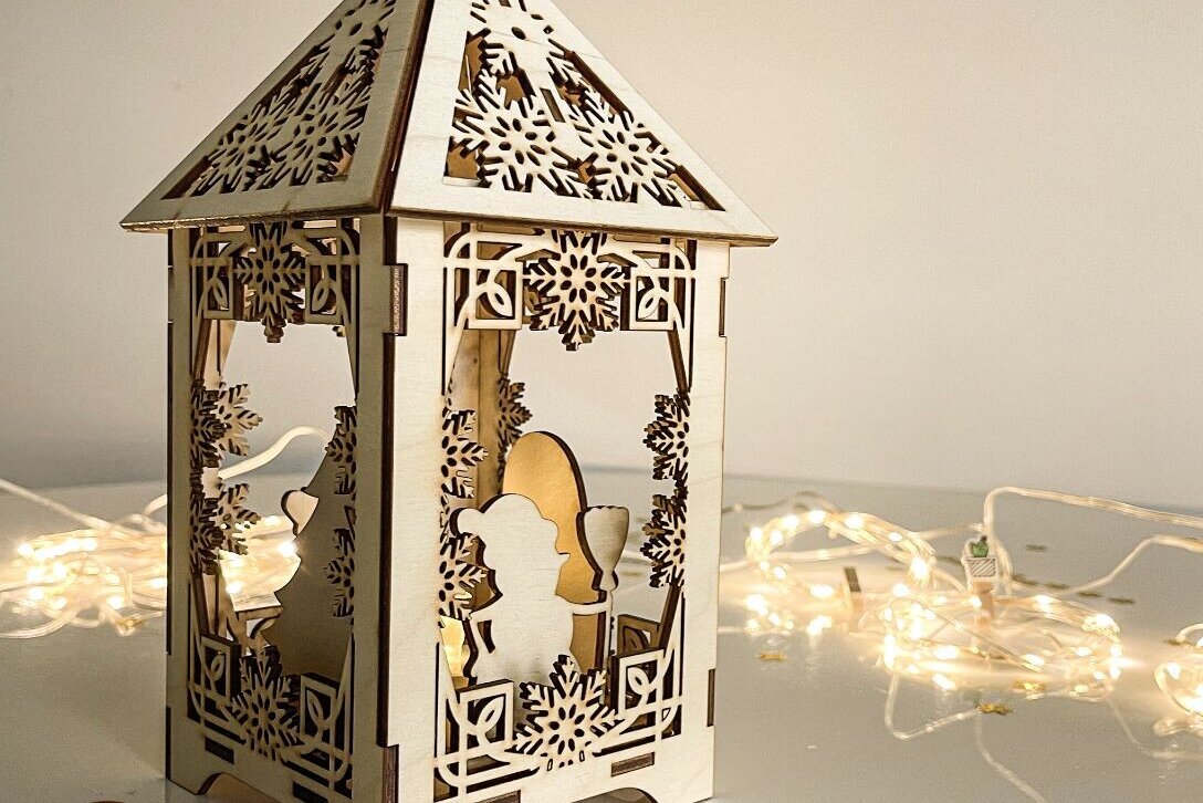Intra απο ξύλο plywood 3mm-4mm πάχος Χριστουγεννιάτικο φανάρι σκιών με λέιζερ Δίασταση 15x15 cm INTRAFABR-109161514