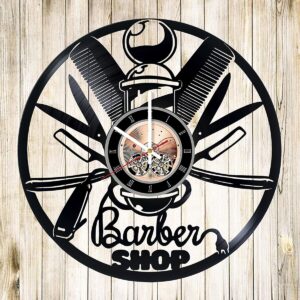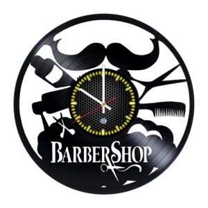 Intra απο ξύλο plywood 3mm-4mm πάχος - Βινυλικό Ρολόι τοίχου Barbershop Διακόσμηση κουρείου Δίασταση 30x30 cm Intraeaxys-078yrlno