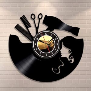 Intra απο ξύλο plywood 3mm-4mm πάχος - Ρολόι τοίχου δίσκων βινυλίου Hipster Hair Salon Δίασταση 30x30 cm Intraeaxys-voq2w4do