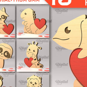 Intra απο ξύλο plywood 3mm-4mm πάχος κοπής με λέιζερ παζλ με καρδιά ζώων Δίασταση 6x6 cm INTRAFABR-97721643