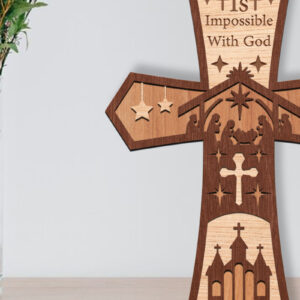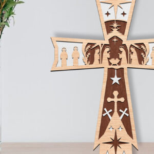 Intra απο ξύλο plywood 3mm-4mm πάχος Τρισδιάστατη πινακίδα σταυρού γέννησης με λέιζερ Δίασταση 30x20 cm INTRAFABR-112031522