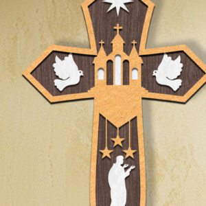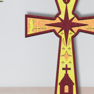 Intra απο ξύλο plywood 3mm-4mm πάχος Τρισδιάστατη πινακίδα σταυρού γέννησης με λέιζερ Δίασταση 30x20 cm INTRAFABR-111976099