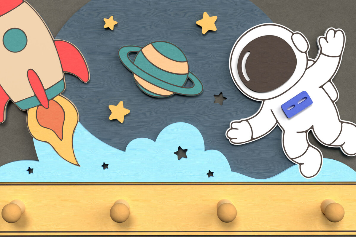 Intra απο ξύλο plywood 3mm-4mm πάχος Astronaut & Rocket Wall Hook Δίασταση 8x8 cm INTRAFABR-124820702
