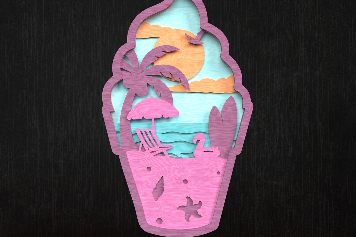 Intra απο ξύλο plywood 3mm-4mm πάχος Beach Sunset Ice Cream Art Δίασταση 8x8 cm INTRAFABR-120349764