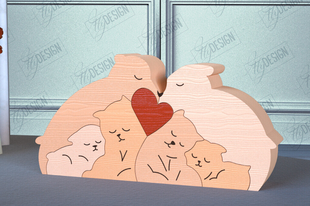 Intra απο ξύλο plywood 3mm-4mm πάχος Bear Family Puzzle κοπής με λέιζερ |CNC Δίασταση 20x20 cm INTRAFABR-100046975