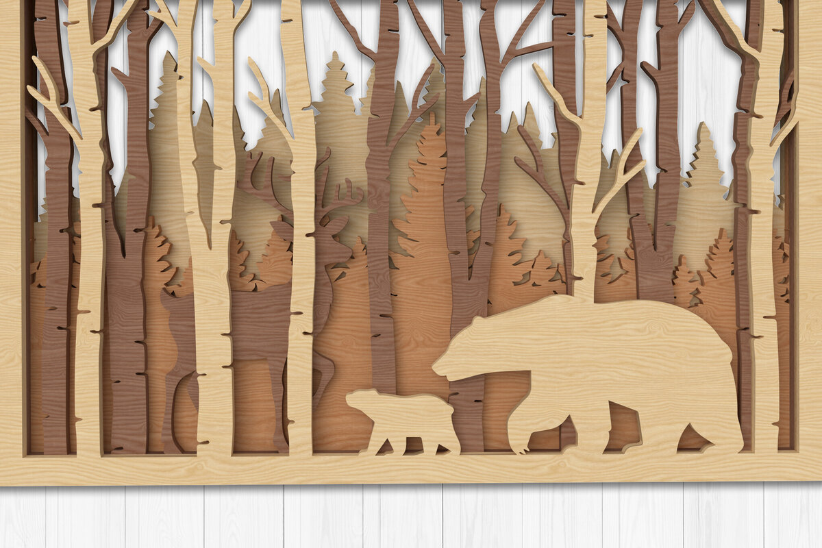 Intra απο ξύλο plywood 3mm-4mm πάχος Bear Forest Layered design Δίασταση 30x20 cm INTRAFABR-112568115