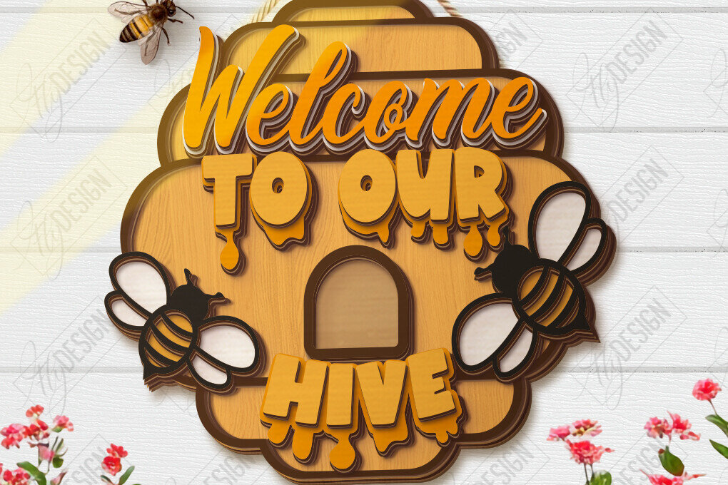 Intra απο ξύλο plywood 3mm-4mm πάχος Bee Welcome Sign Cut | Επιγραφές τοίχου Δίασταση 30x20 cm INTRAFABR-123423983