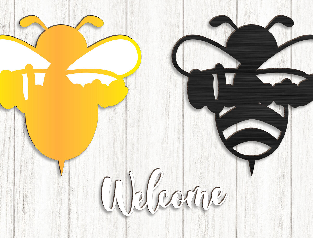 Intra απο ξύλο plywood 3mm-4mm πάχος Bee Welcome Sign Cut | Σημάδι πόρτας Δίασταση 30x20 cm INTRAFABR-123502369