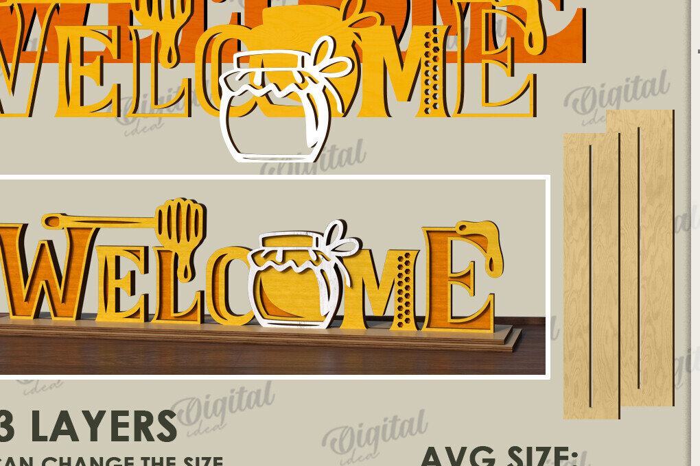 Intra απο ξύλο plywood 3mm-4mm πάχος Bee Welcome Sign Cut | Καλοκαίρι |CNC Δίασταση 30x20 cm INTRAFABR-123572627