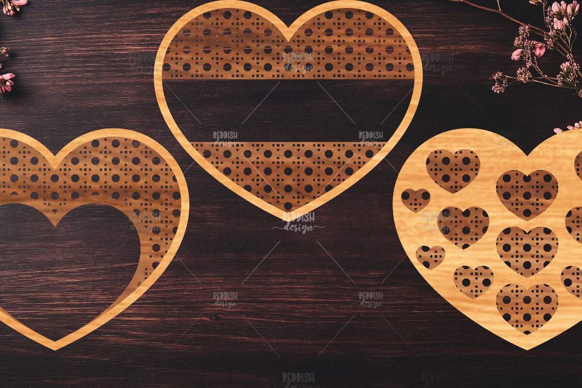 Intra απο ξύλο plywood 3mm-4mm πάχος Boho Rattan Hearts Δίασταση 15x15 cm INTRAFABR-123024991