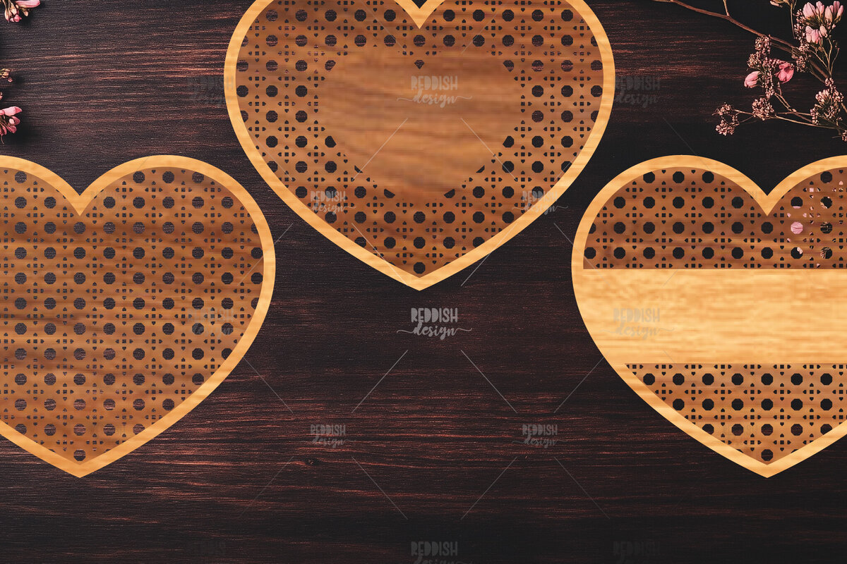 Intra απο ξύλο plywood 3mm-4mm πάχος Boho Rattan Hearts Δίασταση 15x15 cm INTRAFABR-123024929