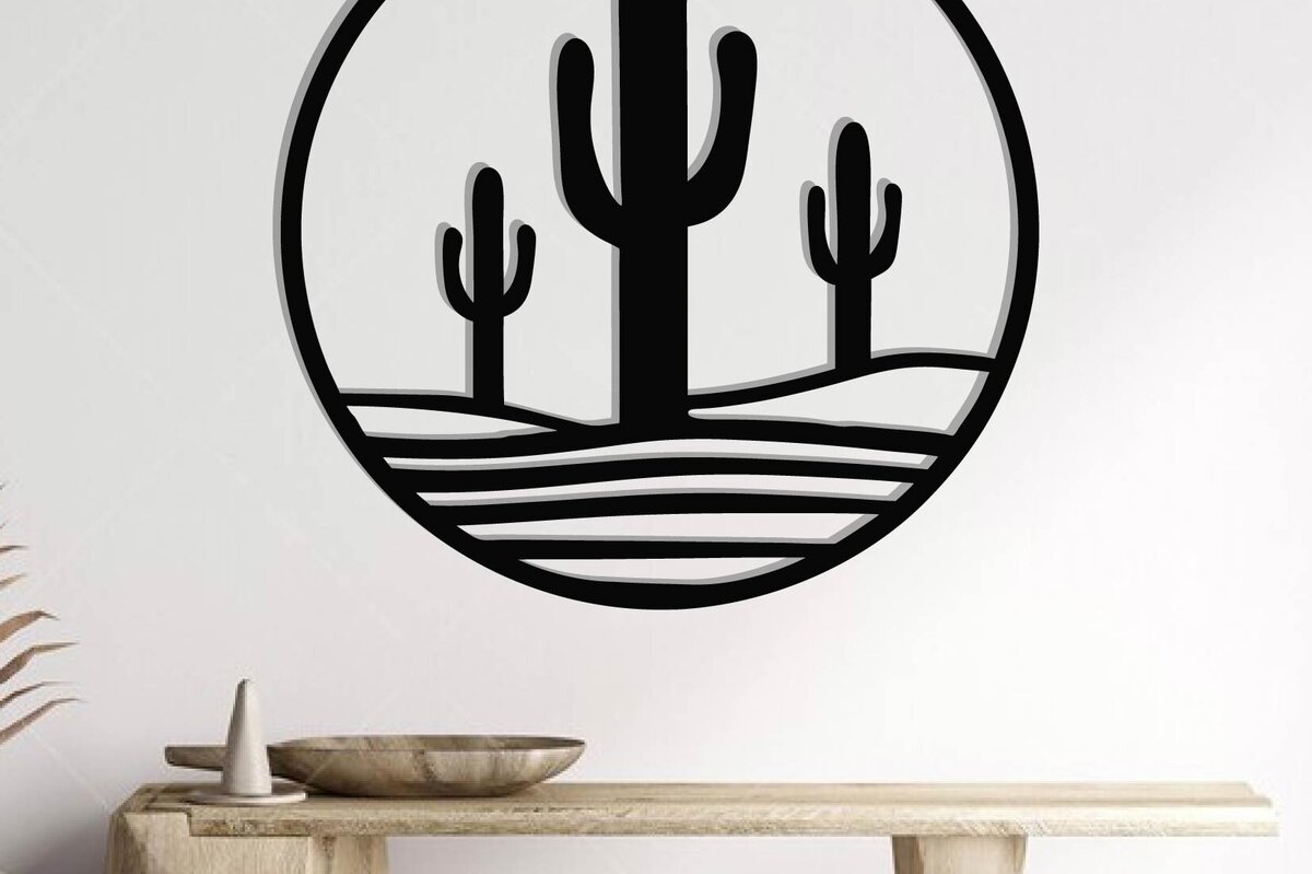 Intra απο ξύλο plywood 3mm-4mm πάχος Cactus Metal Wall Art, κοπής με λέιζερ Δίασταση 40x40 cm INTRAFABR-119299033