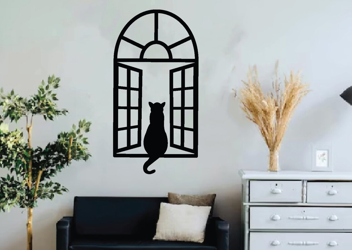 Intra απο ξύλο plywood 3mm-4mm πάχος Cat on the Window , τέχνη τοίχου Δίασταση 40x40 cm INTRAFABR-63398941