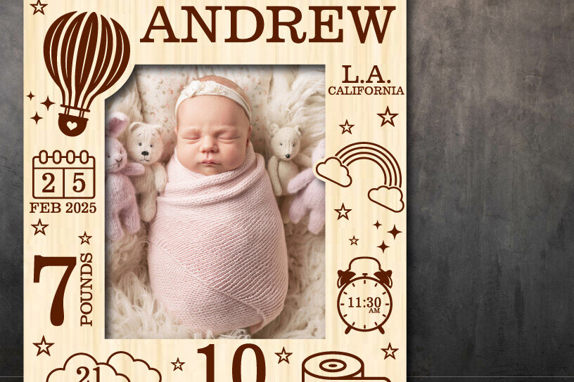 Intra απο ξύλο plywood 3mm-4mm πάχος Βρεφική Ανακοίνωση Κορνίζα Φωτογραφιών Κοπή Δίασταση 20x30 cm INTRAFABR-115529647