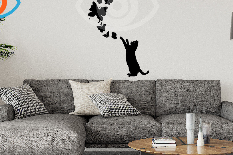 Intra απο ξύλο plywood 3mm-4mm πάχος Γάτα με σχέδιο διακόσμησης τοίχου πεταλούδας Δίασταση 40x40 cm INTRAFABR-67420707