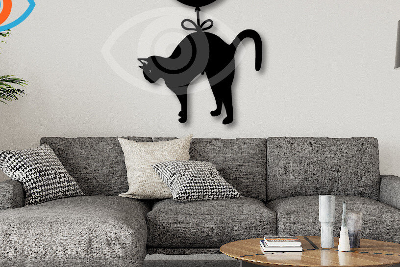 Intra απο ξύλο plywood 3mm-4mm πάχος Γάτα με Μπαλόνι Καρδιάς Τέχνης Τοίχου Δίασταση 40x40 cm INTRAFABR-72298616