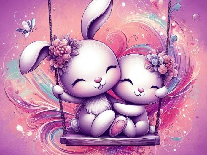 Intra απο ξύλο plywood 3mm-4mm πάχος Δέσμη ενός αξιολάτρευτου κουνελιού ζευγαριού στο Lo Δίασταση 8x8 cm INTRAFABR-98024393