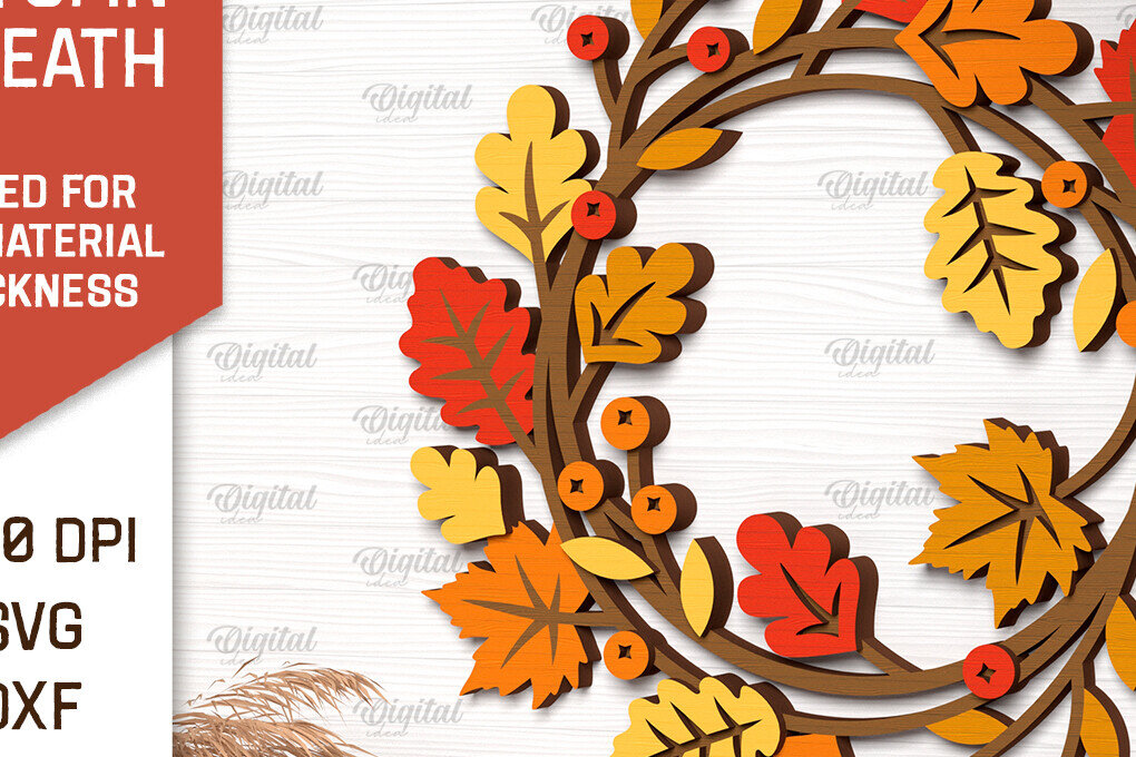 Intra απο ξύλο plywood 3mm-4mm πάχος Δέσμη κοπής με λέιζερ στεφάνια φθινοπώρου Δίασταση 30x20 cm INTRAFABR-102987445