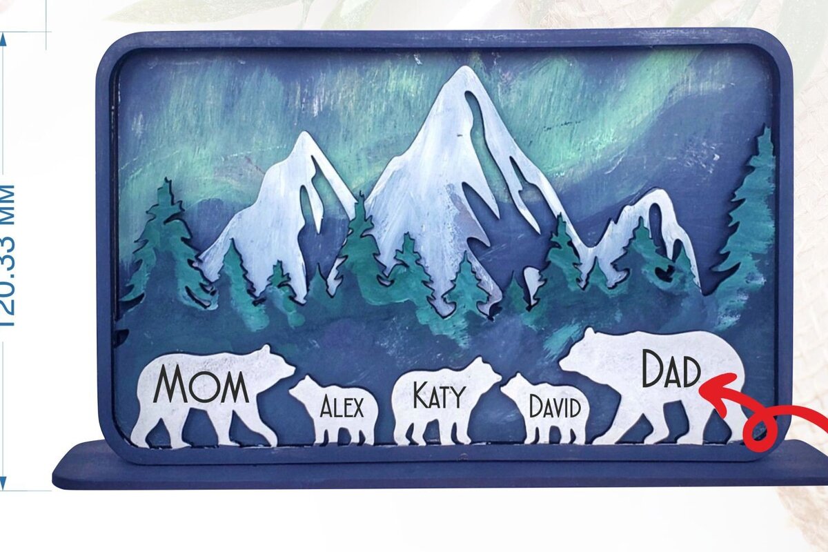 Intra απο ξύλο plywood 3mm-4mm πάχος κοπής με λέιζερ Family Bear, Ημέρα της Μητέρας Δίασταση 15x15 cm INTRAFABR-95112420