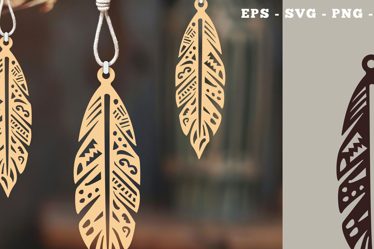 Intra απο ξύλο plywood 3mm-4mm πάχος Στολίδι Boho Feather Cut 4 Δίασταση 8x8 cm INTRAFABR-112014094