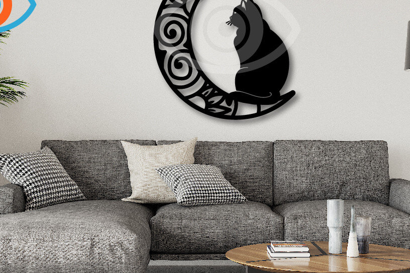 Intra απο ξύλο plywood 3mm-4mm πάχος Σχεδιασμός διακόσμησης τοίχου Cat on the Moon Δίασταση 40x40 cm INTRAFABR-72299850