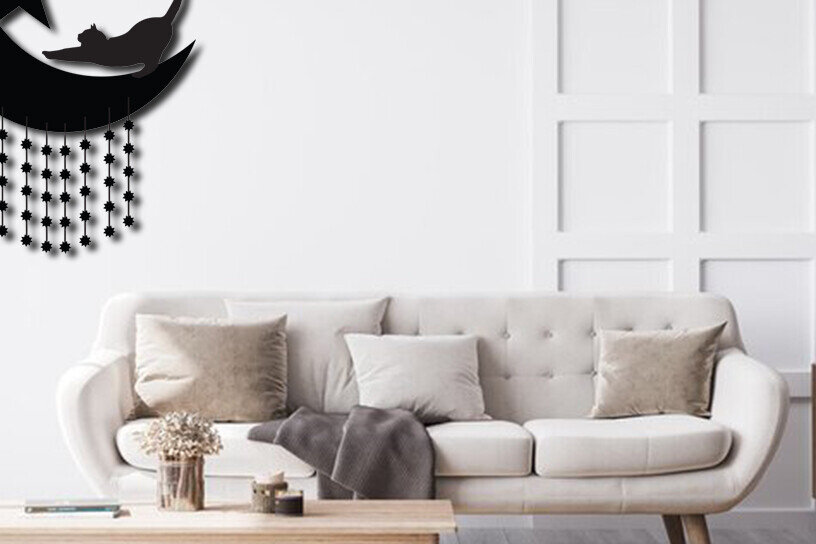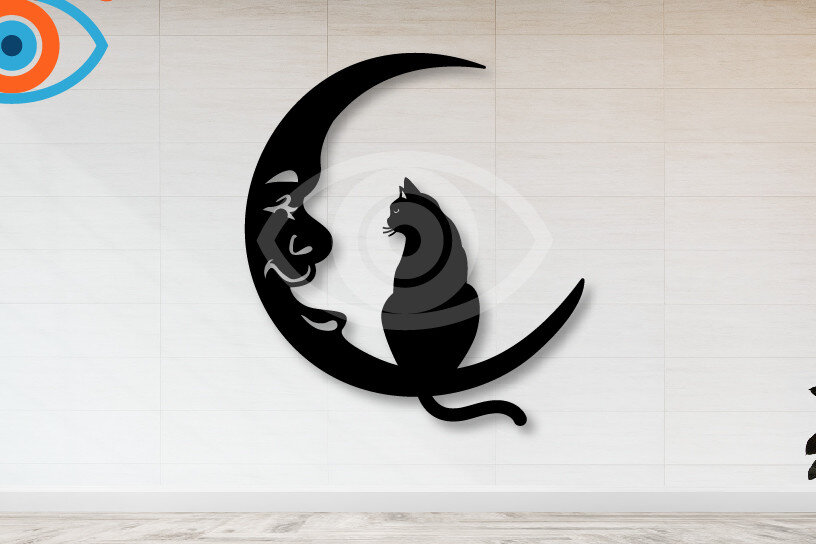 Intra απο ξύλο plywood 3mm-4mm πάχος Σχεδιασμός διακόσμησης τοίχου Cat on the Moon Δίασταση 15x18 cm INTRAFABR-91230577