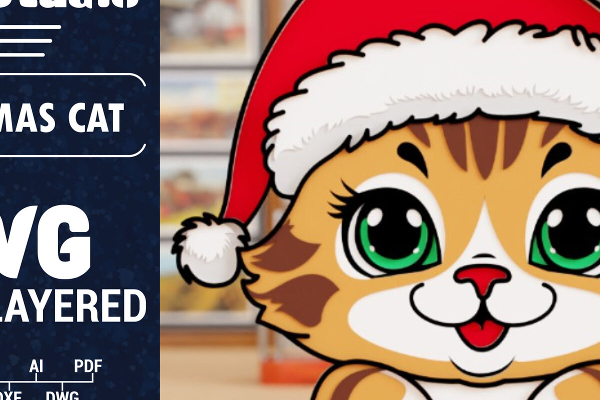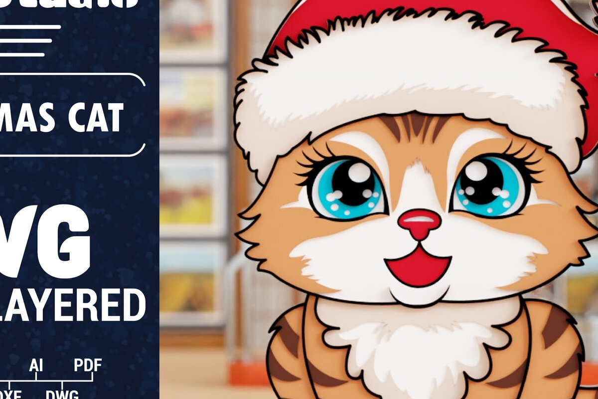 Intra απο ξύλο plywood 3mm-4mm πάχος Τρισδιάστατη χριστουγεννιάτικη γάτα Δίασταση 1500x1500 cm INTRAFABR-101944465