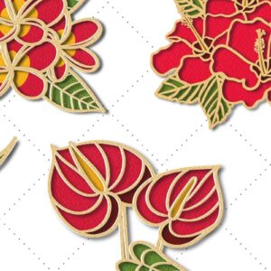 Intra απο ξύλο plywood 3mm-4mm πάχος τρισδιάστατων τροπικών λουλουδιών Δίασταση 4x4 cm INTRAFABR-75783858