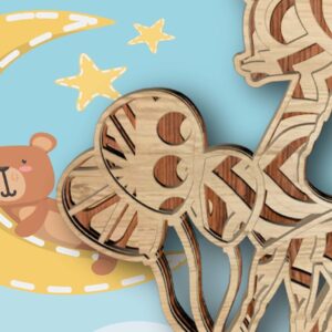 Intra απο ξύλο plywood Χρώμα wenge 3mm-4mm πάχος - Καμηλοπάρδαλη και μπαλόνια, τρισδιάστατη Μάνταλα Δίασταση 30x20 cm INTRAFABR-103123850