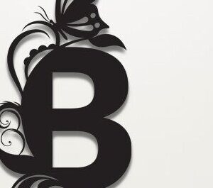 Intra απο ξύλο plywood Χρώμα wenge 3mm-4mm πάχος - Floral Alphabet , Β γράμμα Δίασταση 30x20 cm INTRAFABR-116282214