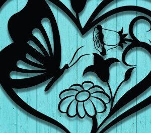 Intra απο ξύλο plywood Χρώμα wenge 3mm-4mm πάχος - Floral Heart Butterfly Δίασταση 20x20 cm INTRAFABR-119881391