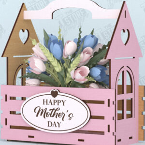 Intra απο ξύλο plywood Χρώμα wenge 3mm-4mm πάχος - Flower Box | Ιδέα δώρου για τη γιορτή της μητέρας |CNC Δίασταση 20x20 cm INTRAFABR-121235121