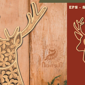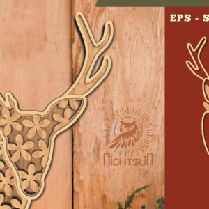 Intra απο ξύλο plywood Χρώμα wenge 3mm-4mm πάχος - Flowers Deer 3D Lasercut Decoration Δίασταση 20x20 cm INTRAFABR-120494489