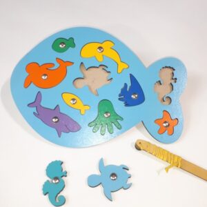 Intra απο ξύλο plywood 3mm-4mm πάχος - Ξύλινο παζλ με μανταλάκια ψαριών Εκπαιδευτικό παιχνίδι με μανταλάκια με θαλάσσια πλάσματα Δίασταση 30x30 cm Intraeaxys-p7ymeyp7