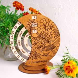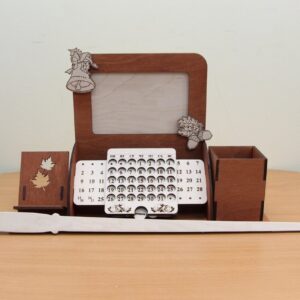 Intra απο ξύλο plywood 3mm-4mm πάχος - Επιτραπέζια οργάνωση με φορητή βάση φωτογραφιών για μολυβοθήκη Perpetual Calendar Δίασταση 30x30 cm Intraeaxys-joedln81
