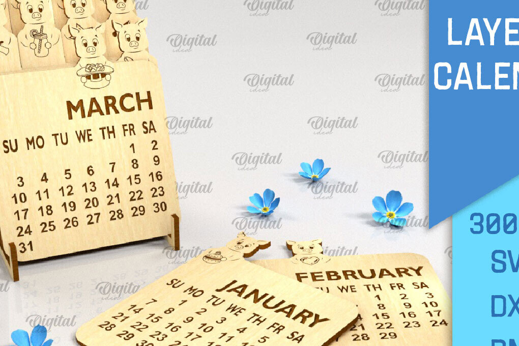 Intra απο ξύλο plywood 3mm-4mm πάχος 3D Layered Calendar Cut . Γάτα Δίασταση 30x20 cm INTRAFABR-88821946