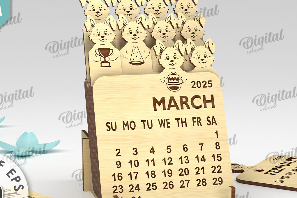 Intra απο ξύλο plywood 3mm-4mm πάχος Ημερολόγιο 2025 με το λαγουδάκι με λέιζερ Δίασταση 15x15 cm INTRAFABR-110847644
