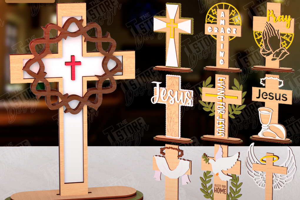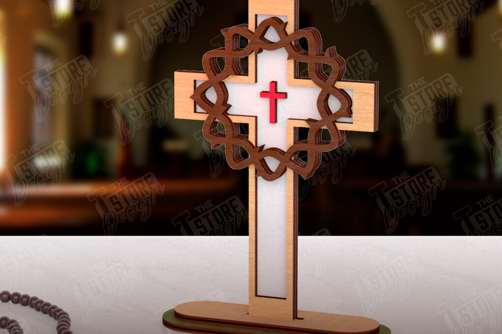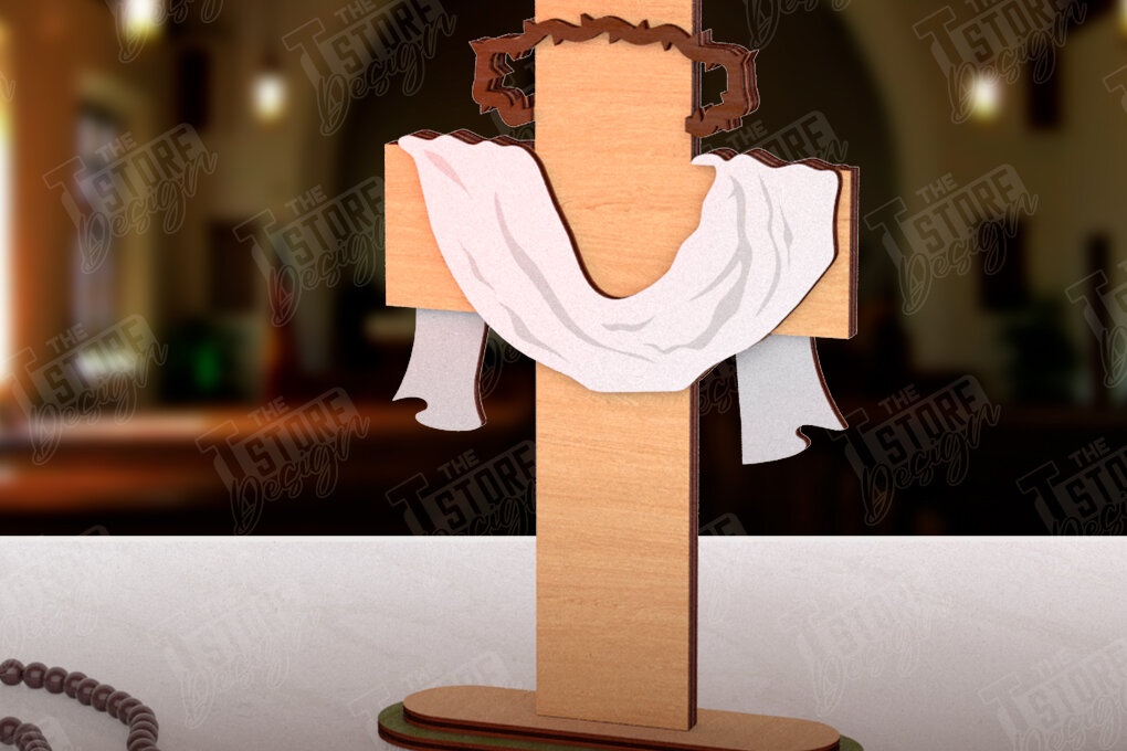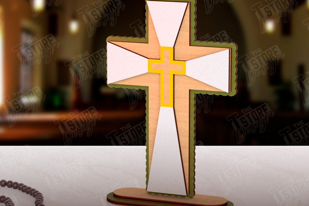 Intra απο ξύλο plywood 3mm-4mm πάχος Χριστιανικός Σταυρός με Stand Δίασταση 15x15 cm INTRAFABR-121116635