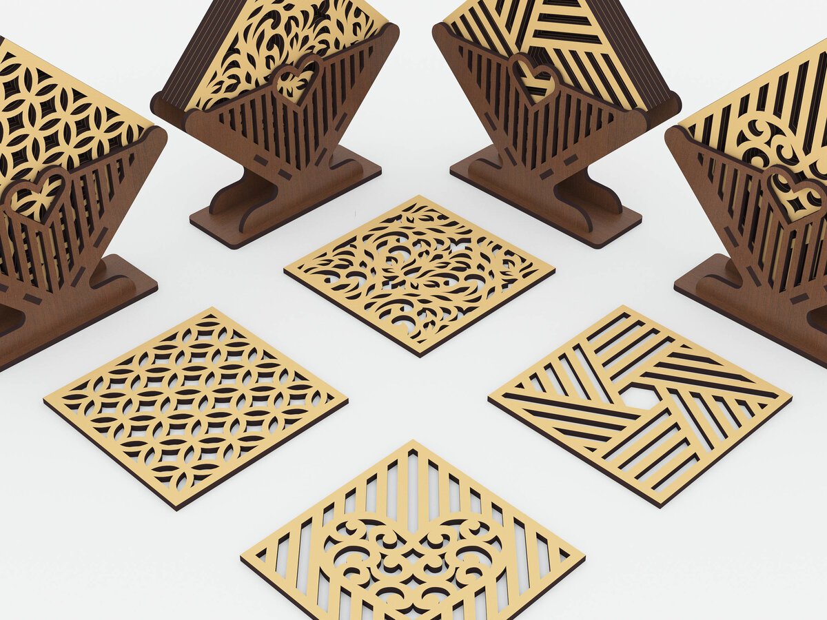 Intra απο ξύλο plywood 3mm-4mm πάχος Σουβέρ με 4 διακοσμητικά σχέδια Δίασταση 15x15 cm INTRAFABR-72392666