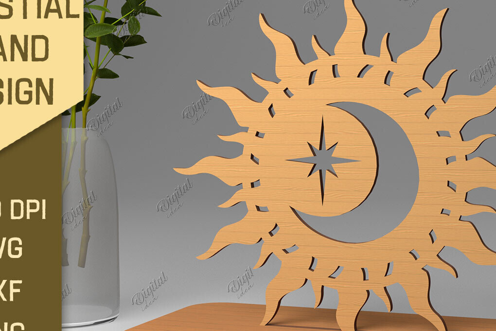 Intra απο ξύλο plywood 3mm-4mm πάχος Τρισδιάστατη Ουράνια Βάση. Λέιζερ Ήλιου και Σελήνης Δίασταση 30x20 cm INTRAFABR-86713696