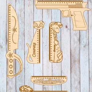 Intra απο ξύλο plywood 3mm-4mm πάχος - Ξύλινος χάρακας μέτρησης σε σχήμα πιστολιού Δίασταση 30x30 cm Intraeaxys-eo0q0401