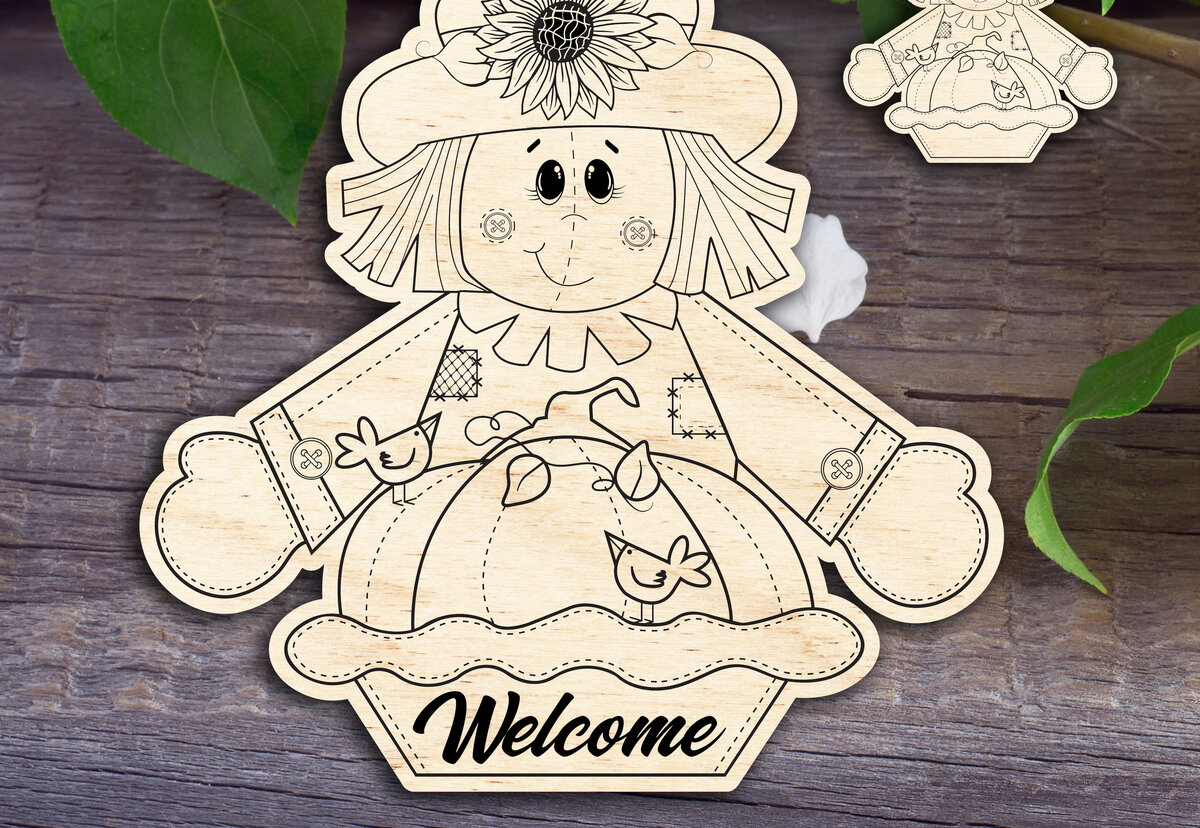 Intra απο ξύλο plywood 3mm-4mm πάχος – Σημάδι καλωσορίσματος κολοκύθας και κενό Δίασταση 20x20 cm INTRAFABR-13922756