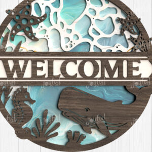 Intra απο ξύλο plywood 3mm-4mm πάχος – Σημάδι καλωσορίσματος Whale & Coral Δίασταση 20x20 cm INTRAFABR-123114616