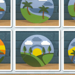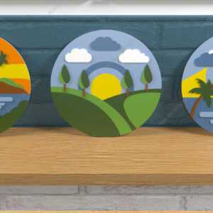 Intra απο ξύλο plywood 3mm-4mm πάχος – Στρογγυλή κρεμάστρα τοπίων διακοπών φοίνικα Δίασταση 20x20 cm INTRAFABR-82780742