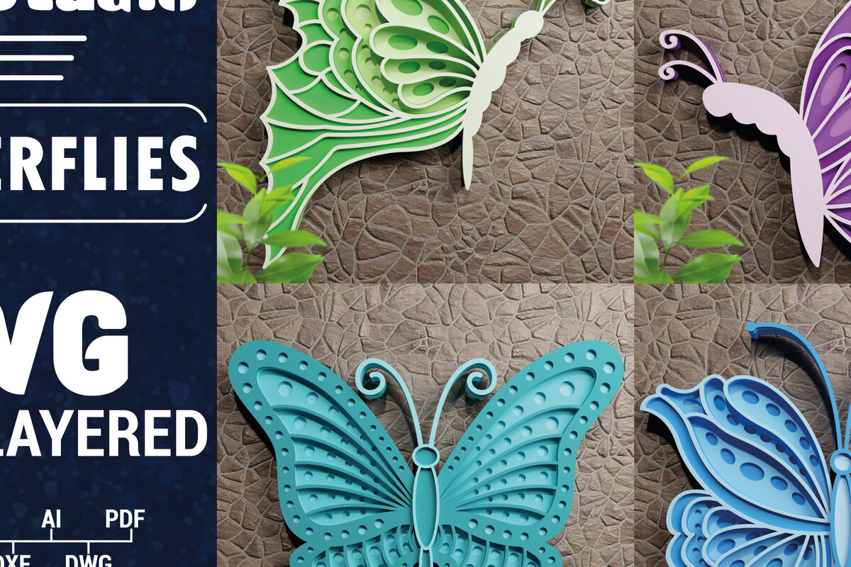 Intra απο ξύλο plywood 3mm-4mm πάχος 3D Butterfly Multilayered Papercut B Δίασταση 1200x1200 cm INTRAFABR-72859771