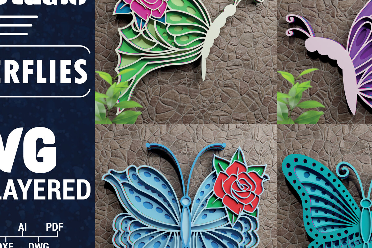 Intra απο ξύλο plywood 3mm-4mm πάχος 3D Butterfly Multilayered Papercut B Δίασταση 1200x1200 cm INTRAFABR-72704007