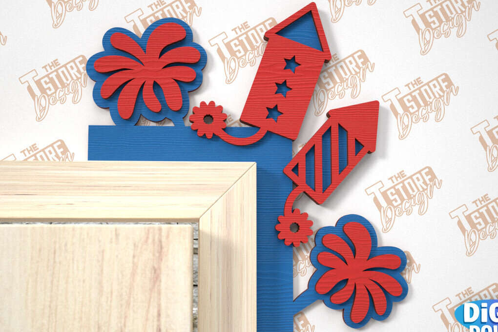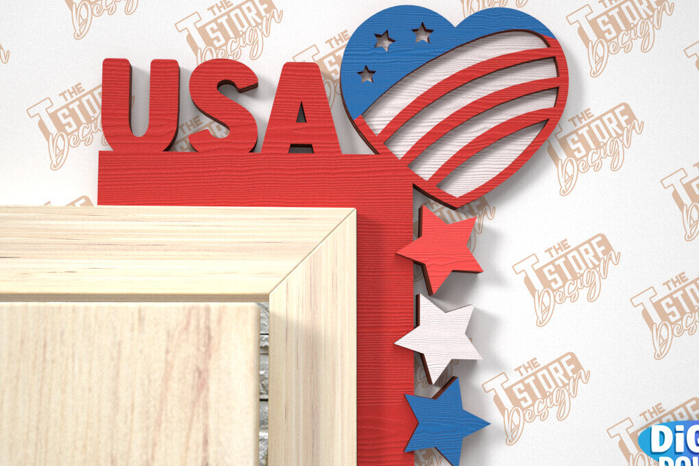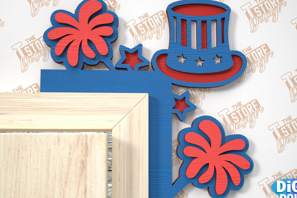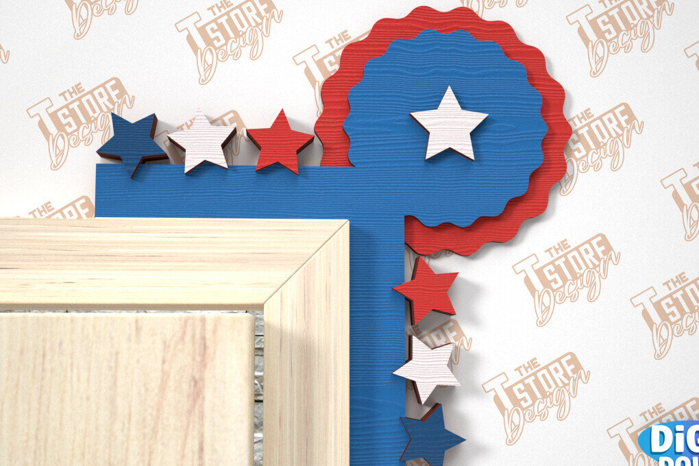 Intra απο ξύλο plywood 3mm-4mm πάχος 4 Ιουλίου Γωνία πόρτας | Πατριωτικό σημάδι Δίασταση 30x20 cm INTRAFABR-98603748